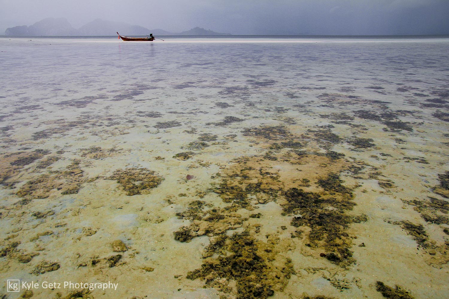 After extending our stay for one more precious day in paradise, we boarded an early morning ferry destined for the Trang islands, a loosely-related clump of islands to the south-east that are a bit far from the normal tourist track. Based on Lonely Planet descriptions, we settled on Koh Kradan, a very small, quiet island that is still conveniently serviced by the Tigerline ferry. After a couple stops at other islands, the ferry stopped again at a seemingly arbitrary spot in the middle of the ocean, where we transferred to a waiting long-tail boat for an hour-long ride to the island itself.