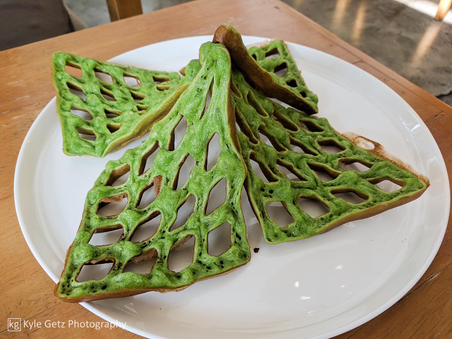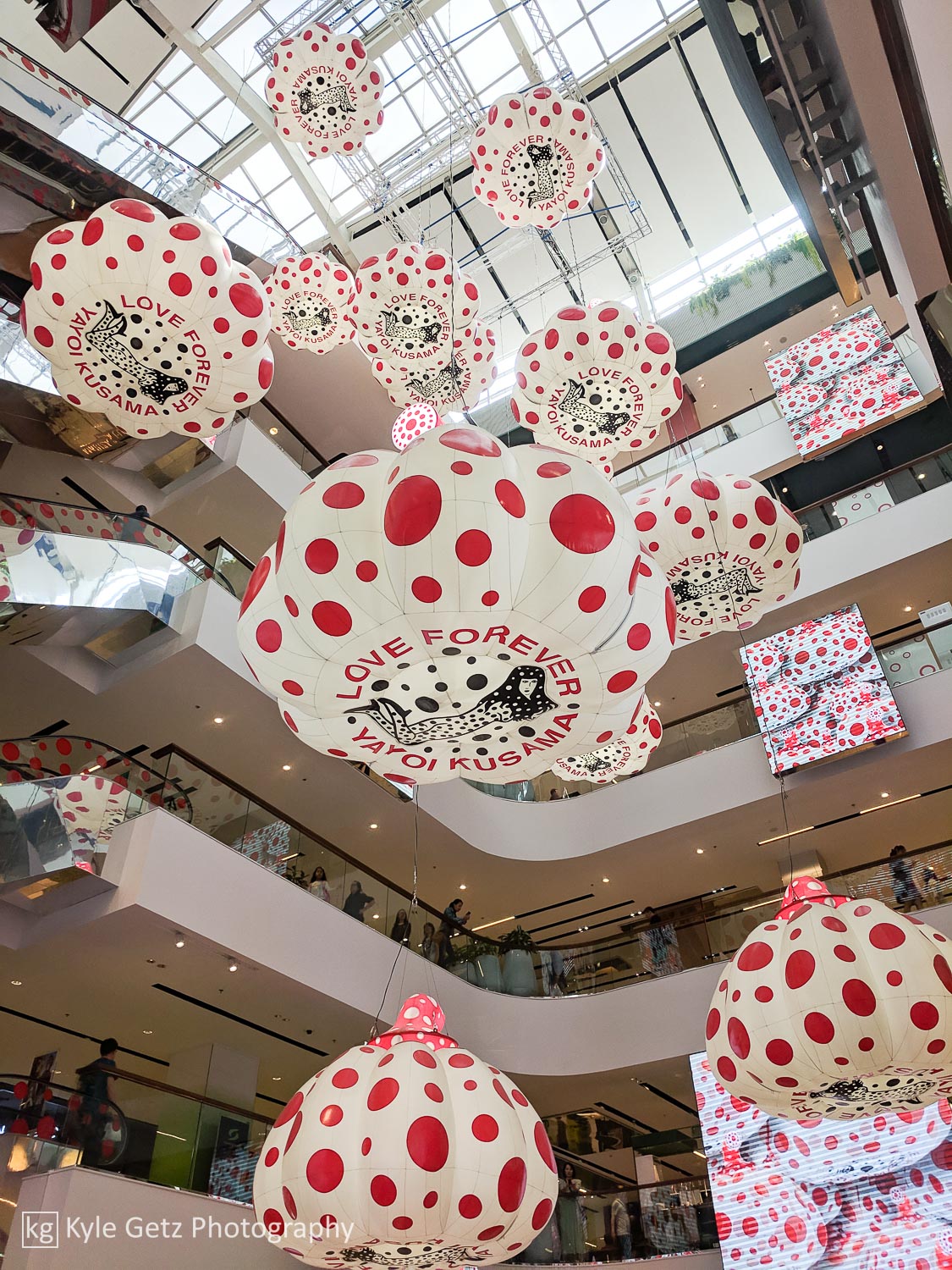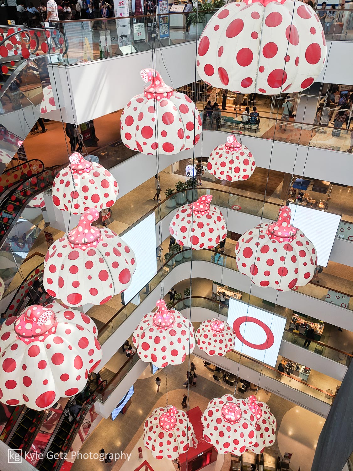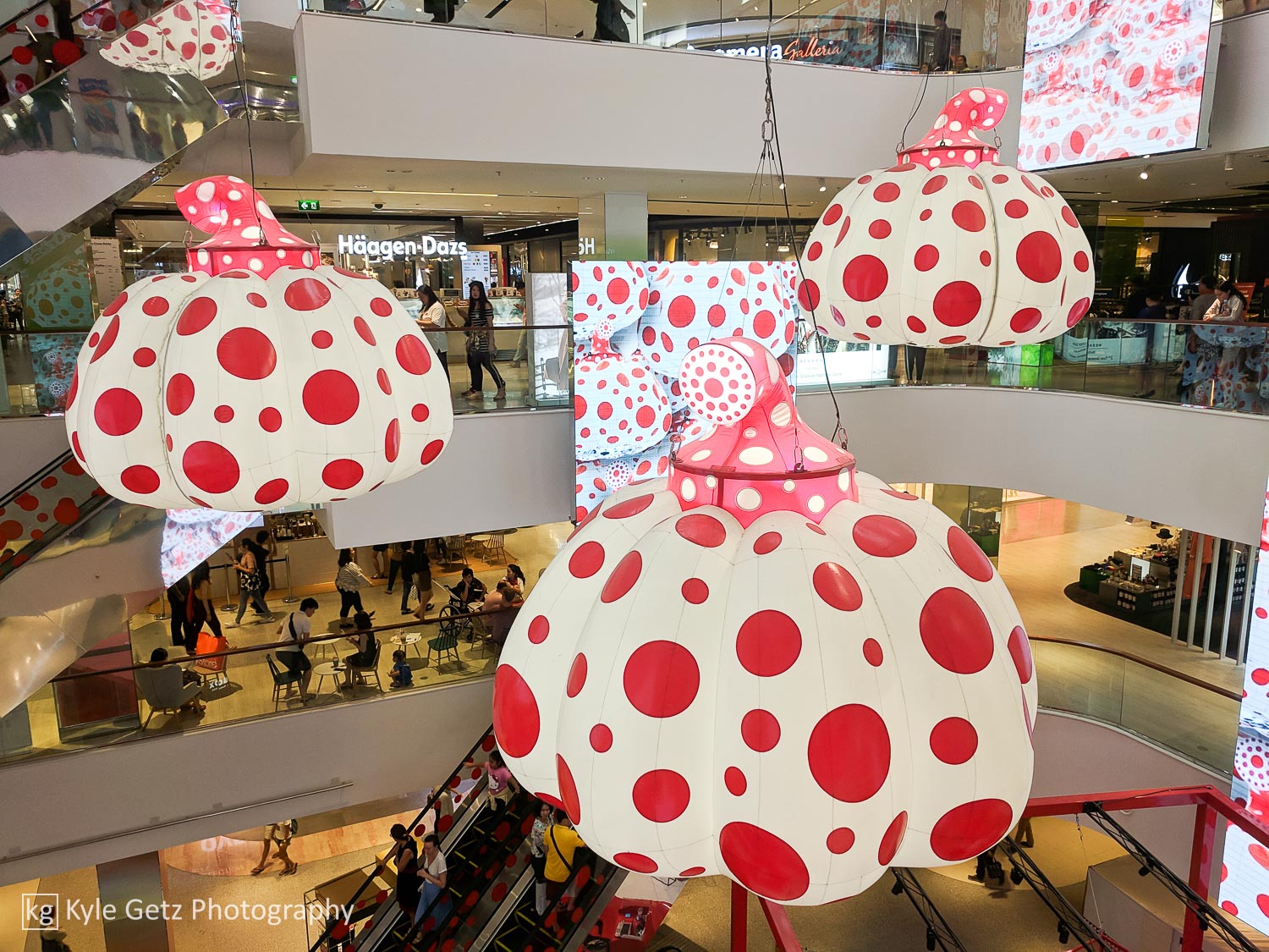 Before heading out on Saturday, we stopped by li-bra-ry (yes, that’s the name) and had our first taste of pandan, in the form of curved, three-dimensional waffles. Afterwards, we went downtown and wandered the malls around Siam, making sure to check out Yayoi Kusama’s art installation at CentralWorld as part of the Bangkok Art Biennale.