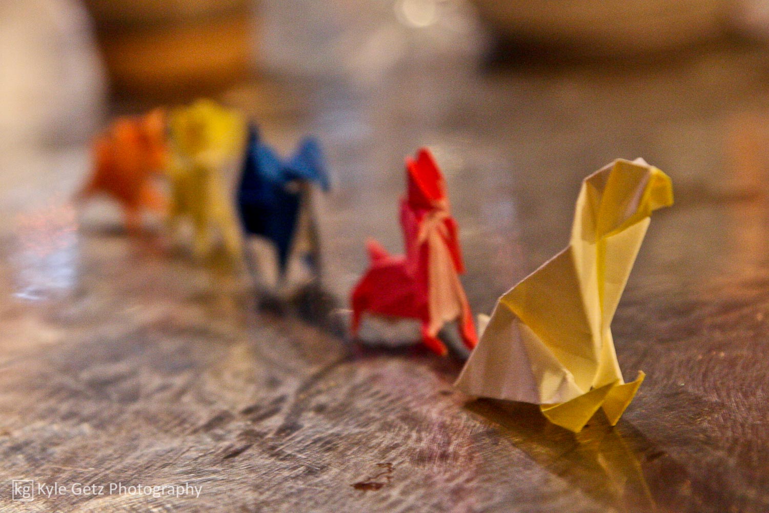 After going to Nijo Castle, we stopped in a cafe in the late afternoon and treated ourselves to some coffee and green tea spongecake. As we were the only customers in there, we started chatting with the two girls who were working and spent the rest of the afternoon helping them with their English and teaching them about America, made easier (and funnier) by using the Japanese tour book for America that they had on hand. Shortly before we left, they treated us to some cookies and our choice of a tiny animal origami piece.