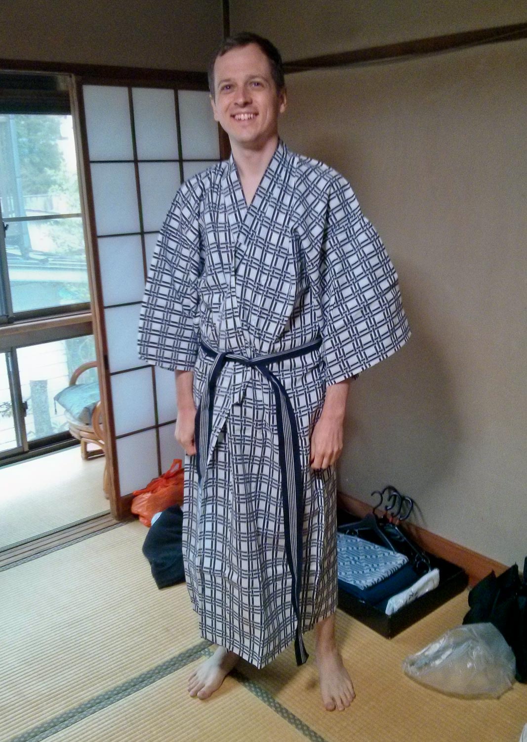 After searching online through a large selection of accommodations including hotels, resorts, Airbnb, and Buddhist temples, we settled on a reasonably priced ryokan, a traditional Japanese inn. Our ryokan also had an onsen onsite, which was practically a requirement for me. An onsen is a natural hot spring; Japan is a volcanically active country, so there are lots of places where the ground water is naturally heated to (or above) hot tub temperatures. The water in an onsen is also a bit murky as a result of all the natural minerals and sediment. Since we stayed at the ryokan mid-week, we were the only guests for most of our time there, which meant we had exclusive access to the onsen whenever we wanted. In a word: delightful.