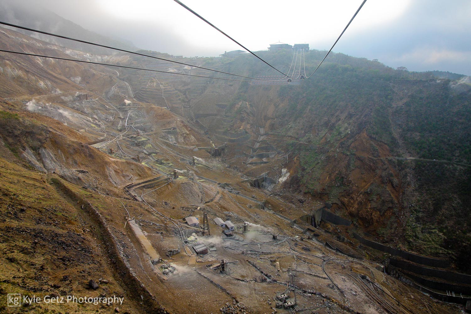 For the rest of the day, we took advantage of our 3-day transit pass and rode various modes of transport, a common tourist activity in Hakone. Between the bus, train, funicular, and ropeway, we got to see a lot of the countryside and its mountains, trees, gorges, and rivers. Parts of Hakone are incredibly green and lush and I was reminded of Ithaca on multiple occasions. The ropeway took us over Owakudani (“Great Boiling Valley”), a volcanic area with many steaming sulfur springs. Tourists are advised not to stay too long there because of the poisonous air.