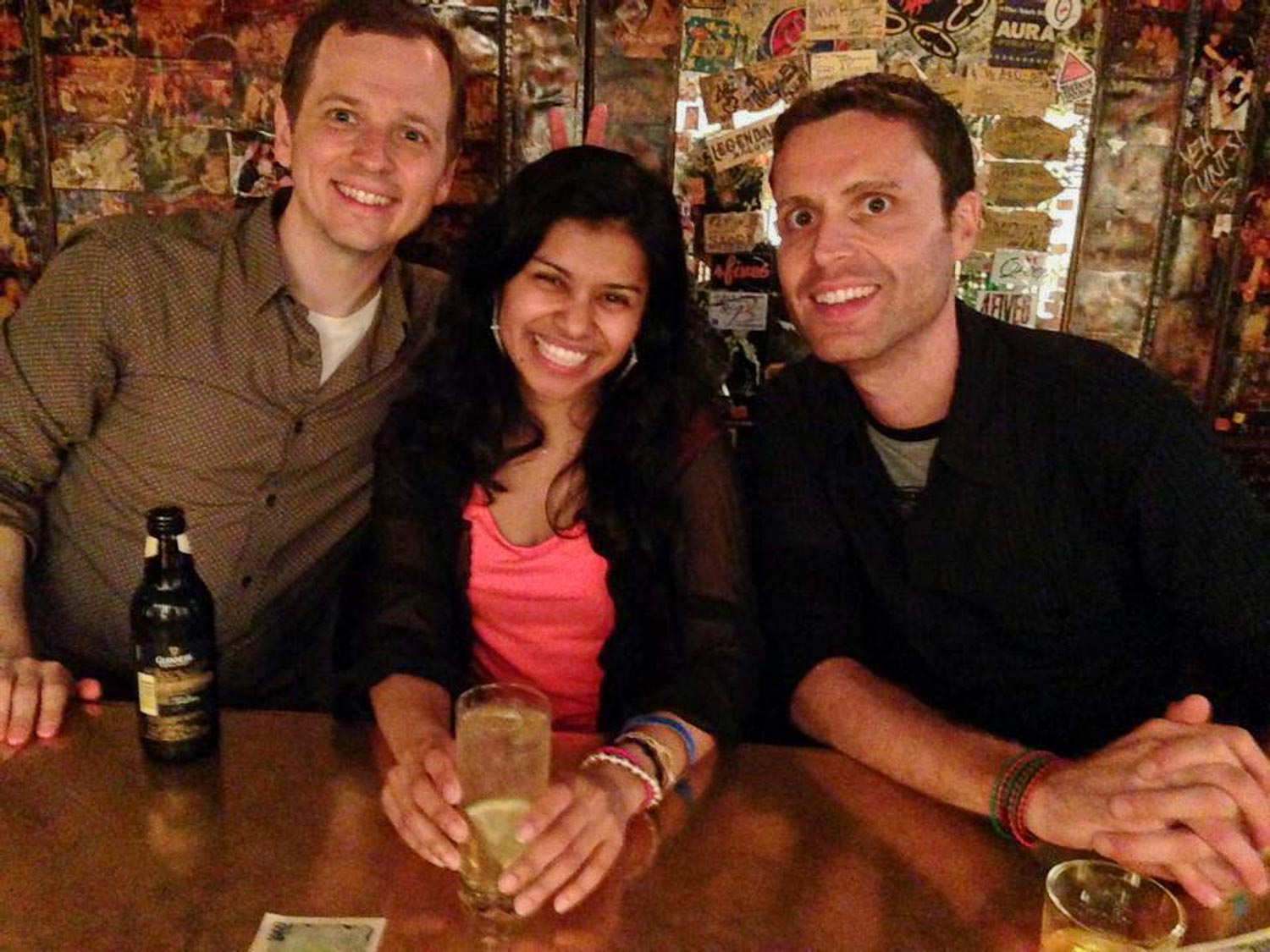 To kick off Saturday night, we started with Popeye brewpub, a recommendation from Andrew’s father when he visited Tokyo. It was completely packed when we got there and they managed to squeeze us in, but then began the game of musical chairs: first standing at a barrel table on the steps, then upgraded to another barrel table further up the steps, then crammed into an alcove at a tiny table, then upgraded to a prime spot on the front patio. We had several excellent craft beers and a decent amount of free food (a perk of ordering specific beers at happy hour), which turned out to be our dinner. Popeye is in Ryogoku, the neighborhood at the center of the sumo universe; as we were sitting on the patio, we exchanged peace signs with a sumo wrestler who walked by and looked somewhat longingly at all the beer and food.