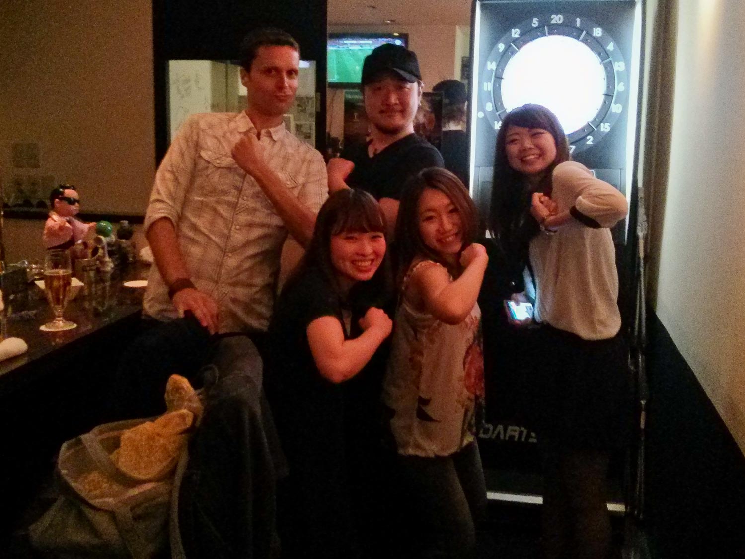 After Popeye’s, we went back to Roppongi and progressed through our fine-tuned, scientific methodology of finding a bar. Truth be told, we wandered for a long time (no one said this approach was perfect), to the point that we passed the same prostitute den mother multiple times. Eventually we found what we wanted: a pleasant karaoke lounge with darts, a nice bartender, a dancing PSY doll on the bar, and a group of friendly Japanese girls, one of whom could speak English pretty well. Fast forward many hours through lots of darts games and karaoke and it was another solid night. Brushing up on our J-pop knowledge that night in Hakone, if only for namedropping purposes, paid dividends.