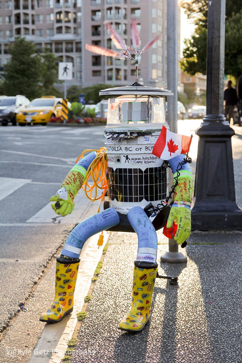 On my way back downtown to get some dinner, I had quite the surprise as I was walking by the water. During the previous week, I had been reading about hitchBOT, a custom-built robot that had made international news by autonomously hitchhiking across the entire country (Halifax to Victoria). I knew he (haha, “he”) would be at an arts space in Victoria the upcoming Thursday, but was under the impression he would be in Seattle for the next few days. Lo and behold, there he was, sitting by the side of the road, taking photos with people who (hopefully) recognized him from the news. I will fully admit that seeing him totally made my day.