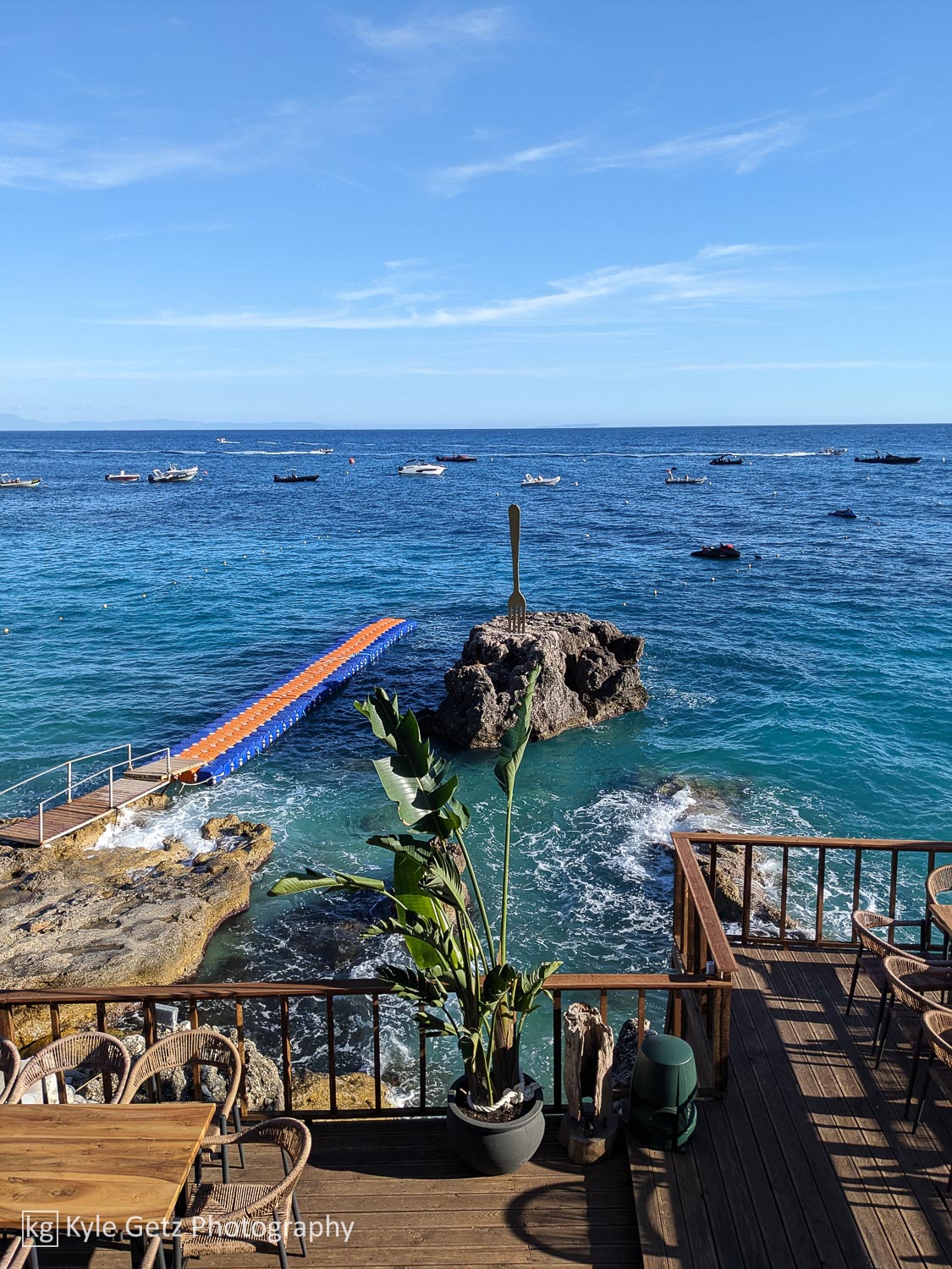 Friday: Gjipe for Romain Garcia, CRi, and Hana. There was a bit of a delay leaving since the waters were too rough for the boats to run, but once we got out of there, we treated ourselves to the requisite post-Gjipe dinner at Luciano’s.